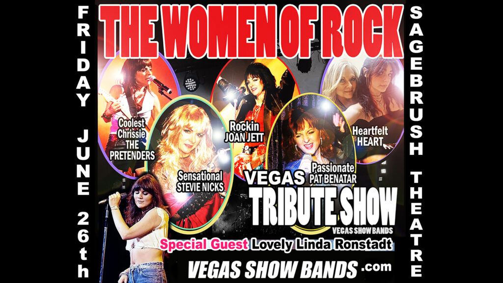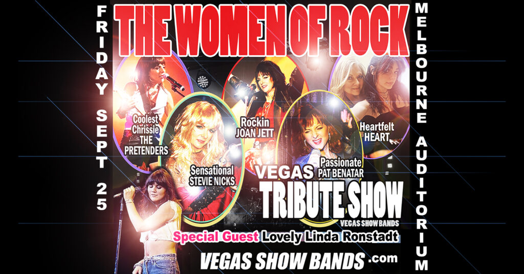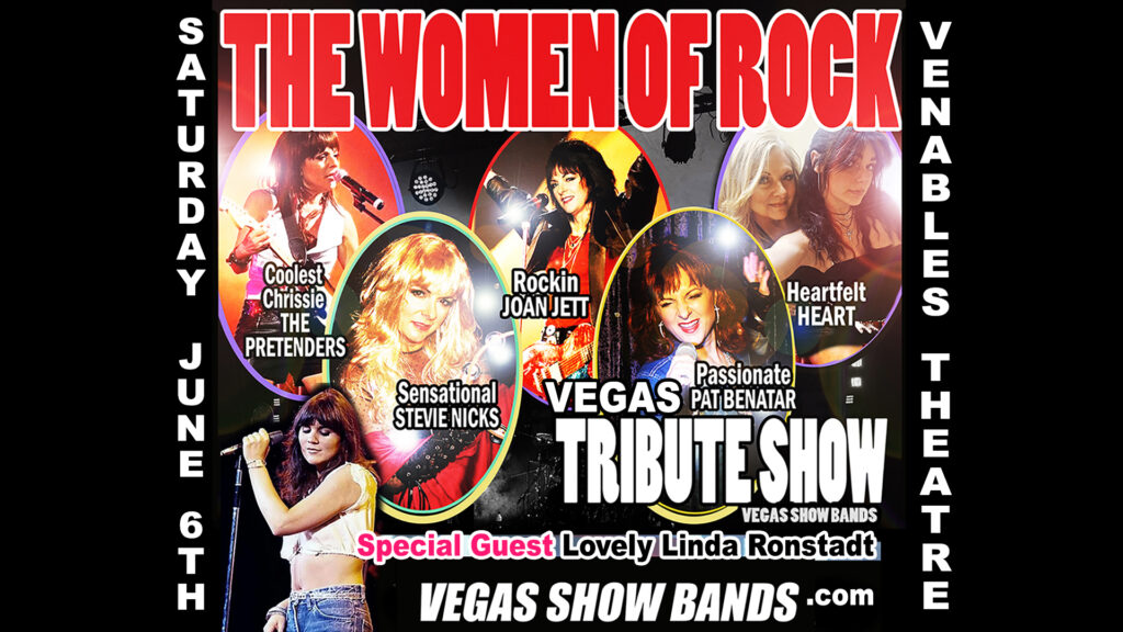 Get ready for THE WOMEN OF ROCK TRIBUTE SHOW Band featuring 6 of the worlds most famous women rockers! Pat Benatar, Stevie Nicks, The Heart sisters, Joan Jett and Chrissie Hynde of The Pretenders.